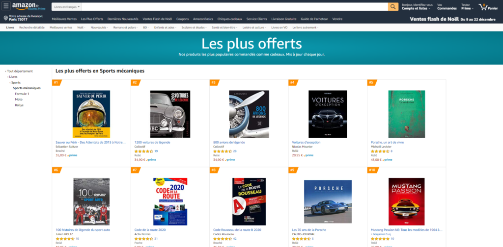 Sur Amazon par exemple, Les 100 Histoires de Légende du Tour de France figurent régulièrement en tête des livres de cyclisme les plus offerts (entre la première et la deuxième position). Et depuis 2019, Les 100 Histoires de Légende du Vélo accompagnent le titre phare de la collection dans le haut du classement (à la huitième position comme ci-dessous dans l’image).
